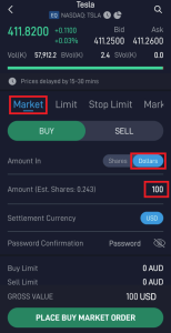 If a US stock like Tesla trades at US$400 per share, but you only want to invest US$100, you can buy 0.25 shares (a quarter) rather than waiting to afford a full one.
